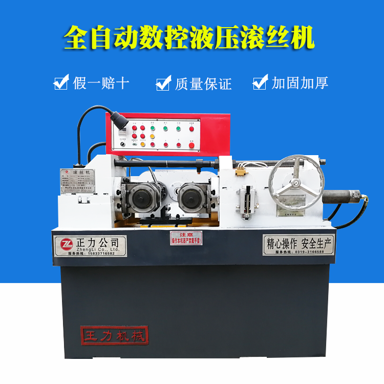 邢臺(tái)正力機(jī)械制造有限公司是國(guó)內(nèi)高端平價(jià)滾絲機(jī)專業(yè)化制造企業(yè)。 本公司是集研制、開發(fā) 、生產(chǎn)與銷售為一體的大型機(jī)械廠家,現(xiàn)主要產(chǎn)品有:滾絲機(jī),螺紋機(jī)床,縮經(jīng)機(jī),拔料機(jī),冷軋壓圓機(jī),雙組拉絲機(jī)等各種機(jī)械。地處燕趙大地南部邢臺(tái)市,是省級(jí)重合同、守信用、產(chǎn)品質(zhì)量穩(wěn)定型企業(yè),河北省消費(fèi)者協(xié)會(huì)信的過產(chǎn)品,產(chǎn)品暢銷全國(guó)各地,深受用戶的好評(píng)。          現(xiàn)擁有Z28-40、80、150、200、280、63型系列在五金建筑、汽摩配件、交通電力、標(biāo)準(zhǔn)件制作等高精度產(chǎn)品加工行業(yè)中,對(duì)高強(qiáng)度螺紋、網(wǎng)紋、花鍵、直斜紋、梯形螺紋、特殊軸類的滾軋加工有很強(qiáng)的優(yōu)越性,以高效、精密、快捷的工作原理深受廣大用戶的信賴。         專用的液壓縮徑機(jī)WL-25、36、48、60、型操作簡(jiǎn)便,適用范圍廣,生產(chǎn)效率高,使金屬擠壓快速成型,節(jié)約了原材料,提高了金屬密度和抗拉強(qiáng)度         本公司長(zhǎng)期供應(yīng)各種滾絲輪、縮徑機(jī)模具等各種配件。          產(chǎn)品暢銷河北,河南,山西,山東、遼寧、黑龍江、吉林、北京、天 津等省市自治區(qū)。我們不斷引進(jìn)國(guó)內(nèi)外先進(jìn)技術(shù),不斷優(yōu)化產(chǎn)品結(jié)構(gòu),精心鑄造產(chǎn)品質(zhì)量。王力品牌系列滾絲機(jī)、縮徑機(jī)、絲杠機(jī)是根據(jù)國(guó)內(nèi)的先進(jìn)機(jī)型加以改進(jìn),具有結(jié)構(gòu)設(shè)計(jì)科學(xué),結(jié)構(gòu)合理、能耗低、精度高、 使用壽命長(zhǎng)等優(yōu)點(diǎn)。         我們正被更多的朋友接受,認(rèn)可,因?yàn)槲覀冇谜嬲\(chéng)……